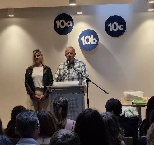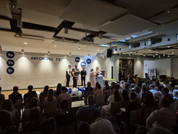 Die Feier war nicht nur eine Bühne für herausragende Leistungen, sondern auch ein Ort, an dem starke Bande zwischen Lehrern und Schülern deutlich wurden. Besonders die beiden weiblichen Klassenlehrkräfte, Katharina Pröve und Demet Akdeniz, hatten es schwer, ihre Tränen zu verbergen. „Es war uns eine Freude, euch begleiten zu dürfen“, sagte Katharina Pröve unter Tränen. Ihre Kollegin Demet Akdeniz ergänzte: „Dieser Jahrgang war besonders, er zeigte nicht nur schulische Stärke, sondern auch eine einzigartige Kameradschaft.“
