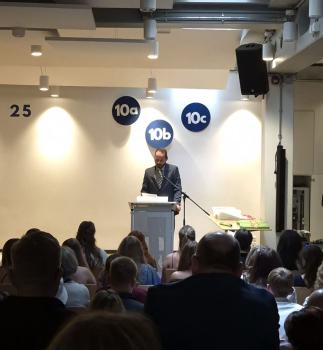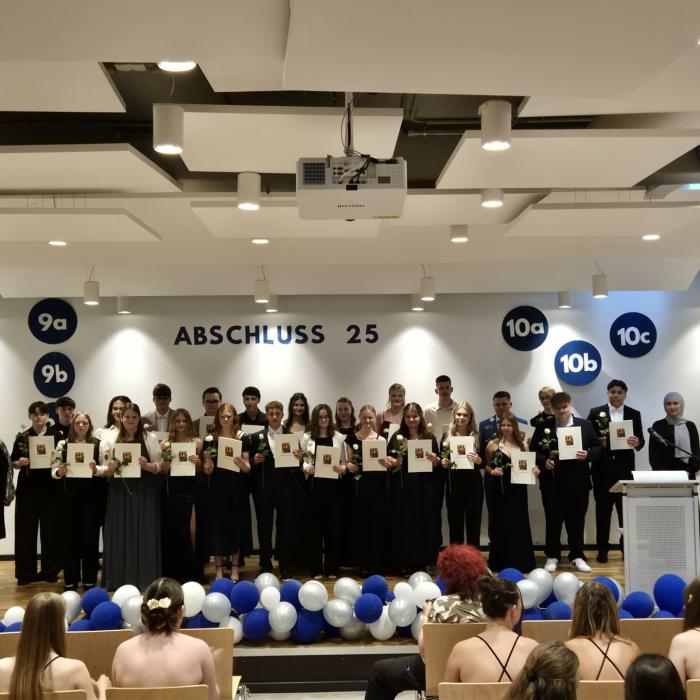 Die feierliche Zeremonie begann mit einer herzlichen Ansprache der Schulleiterin Frau Rausche. Diese sprach nicht nur über die herausragenden Leistungen der Abschlussklassen, sondern hob auch die in der Vergangenheit liegende Umbauphase der Schule hervor, die symbolisch für die vielen Veränderungen steht, die den Schülerinnen und Schülern bevorstanden und bevorstehen.